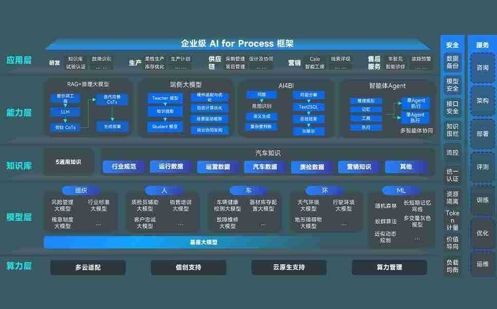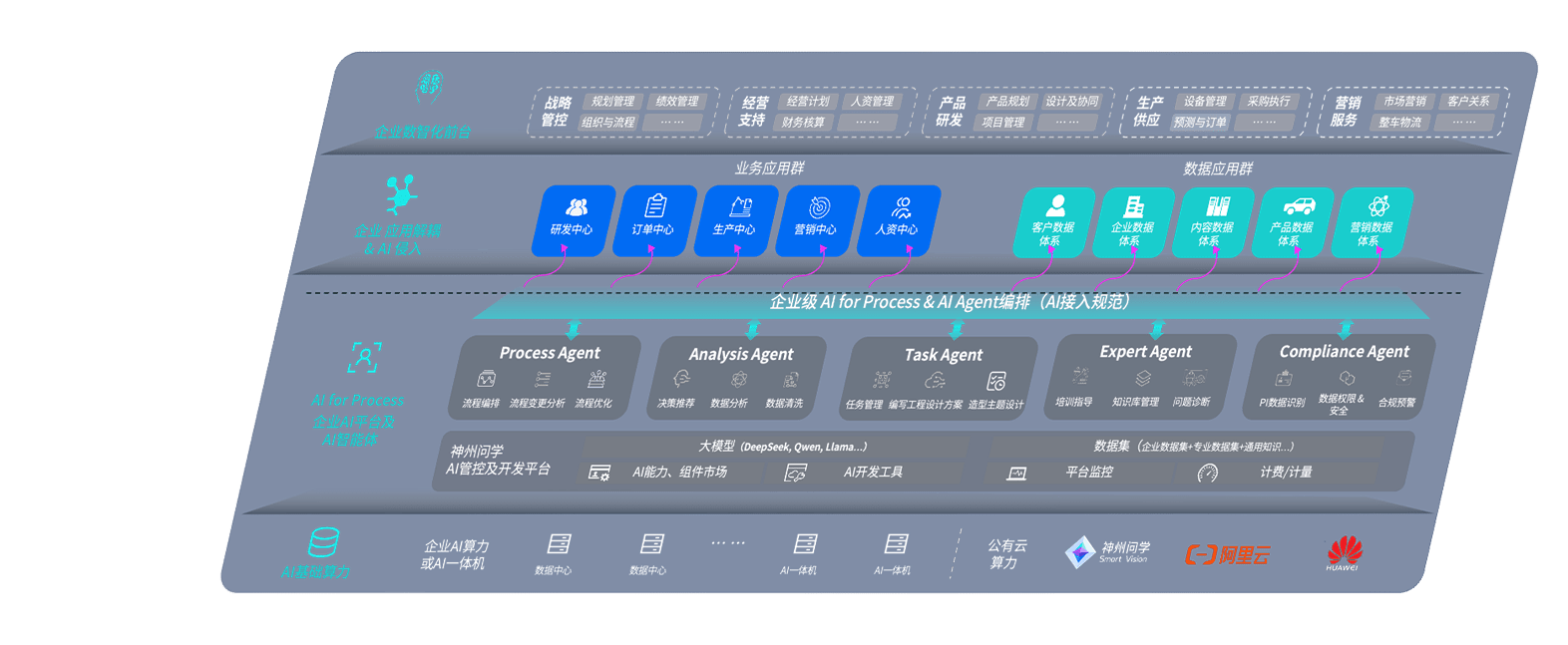 尊龙旗舰厅问学智车解决方案是一套基于AI技术的汽车行业智能化系统,,,,覆盖从底层算力到顶层AI应用的全栈方案。。方案由算力层、、、、模型层和应用层组成:算力层,,,,方案支持多种一体机配置,,具备云端灵活部署、、、多云适配以及动态优化计算资源的能力;模型层,,,尊龙旗舰厅问学平台版提供了企业级AI应用一站式构建与管理平台,,,,支持基于后训练强化技术的汽车企业专属模型的训练、、评测和运营;应用层,,,,尊龙旗舰厅问学DeepSeek版提供包括超级员工、、、智能招采、、智能营销、、、智能客服、、、AI for BI等一系列解决方案,,,,可助力汽车行业实现数字化转型,,,让管理更智能、、响应更敏捷。。。。