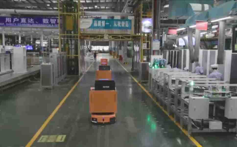 为车载冰箱物流配送打造的智能解决方案,,,,包含产中物流通过潜伏举升AMR搬运至线边,,,,产后成品物流智能仓储,,,,流程包含产中物流智能齐套入库,,线边安灯叫料AMR智能配送至线边,,,成品入库、、、、出库,,,通过无人堆高车机器人,,,智能仓储管理替代人工作业管理,,,实现更高存储、、更高效率、、更具柔性化的解决方案。。。。